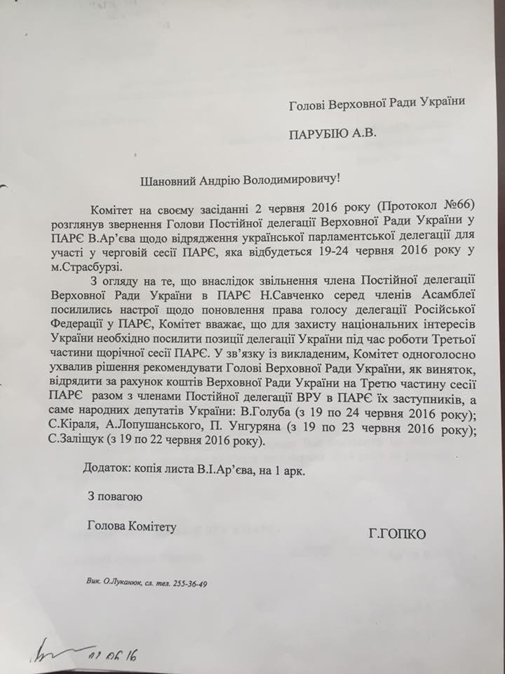 Заступники членів ПАРЄ поїдуть на сесію державним коштом, але ...не усі. Дискримінація пов'язана з політичною позицією. Ар'єв домовився, що поїдуть лише ті, хто має лояльність до зовнішньополітичного курсу Порошенка в цілому і до Ар'єва особисто як голови делегації: Владислава Голуба (БПП), Павла Унгуряна (НФ), Андрія Лопушанського (БПП), Сергія Кіраля ("Самопоміч", Єгор Соболєв, друже, зверни увагу).
