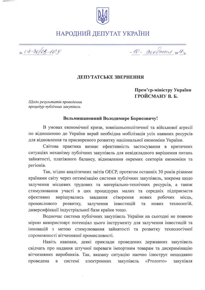 Купувати імпортну продукцію при держзакупівлях, якщо ми самі виробляємо або можемо виробляти таку, це все одно що накласти на себе економічні санкції. Кошти наших платників податків створюють робочі місця та добробут в інших країнах, тоді як мільйони українців сидять без роботи чи емігрують в її пошуках!