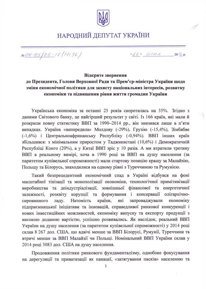 Давайте откровенно: действия Правительства - это не просто бездействие в сфере реформирования, это имитация реформ для того, чтобы Украине опять дали деньги, опять позаимствовали кредиты и т.д. Но кто будет отдавать кредиты, когда экономика практически не работает. Правительство даже не пытается ее запустить. Наша фракция не только акцентирует внимание общества на недостатки государственного управления и состояния дел (практически во всех сферах), а дает реальные и четкие способы для их решения. Более того, мы прописываем конкретные дорожные карты.
