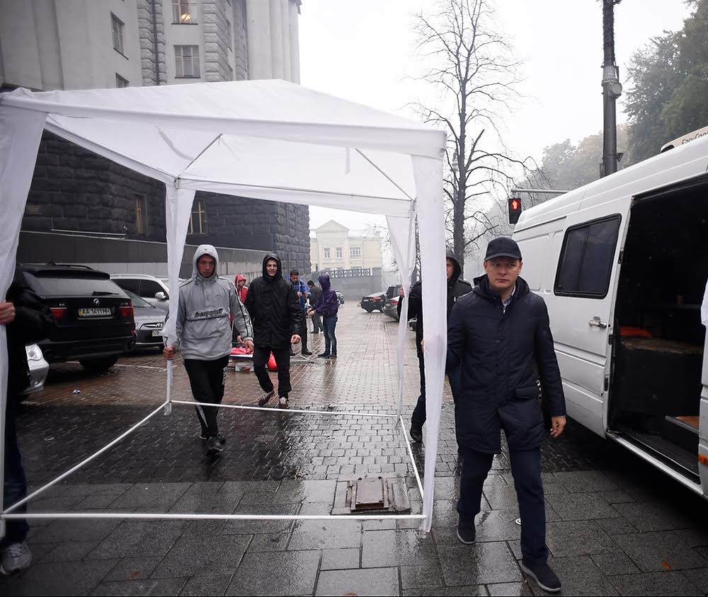 Біля Кабміну почали встановлювати наметове містечко: завезли буржуйки, кавову машину, спальні мішки, біотуалети. Організовують гаряче харчування. В польовому режимі проводять і засідання фракції Радикальногї партії, де встановлюють чергування, призначають відповідальних за охорону, дотримання громадської безпеки.