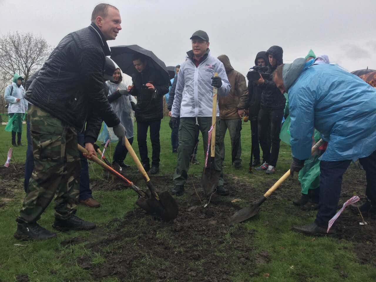 Разом з депутатами він висадив кущі та поспілкувався із киянами. Активістів пригощали пиріжками з калиною та чаєм і розважали українськими піснями.