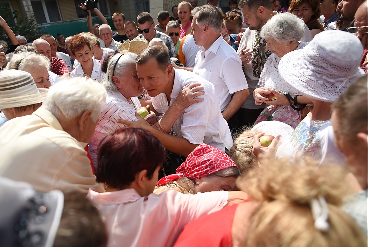 У свято Яблучного Спаса Олег Ляшко приїхав провідати ветеранів війни, що проходять лікування у центрі медико-соціальної реабілітації у селі Циблі на Київщині. Їх у медзакладі – 576 чоловік. Політик привіз щойно освячені яблука, виноград і мед, а також пообіцяв вибити кошти на ремонт 3-го корпусу, який чекають тут понад 5 років.