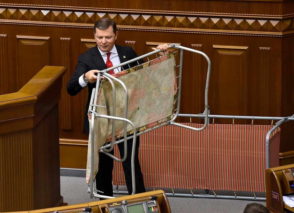 Два тижні фракція Радикальної партії блокувала цю парламентську трибуну, вимагаючи початку парламентського розслідування. Два тижні провладні фракції, зокрема «Блок Петра Порошенка», блокували можливість реєстрації постанови у парламенті і початку парламентського розслідування. І лише сьогодні після того, коли ми принесли розкладачки до парламенту і поставили умову, що ми оголошуємо цілодобове блокування, нарешті процес рушив і голова парламенту – дякую йому за це – дав доручення зареєструвати відповідний проект постанови про розслідування корупції Президента і його оточення.