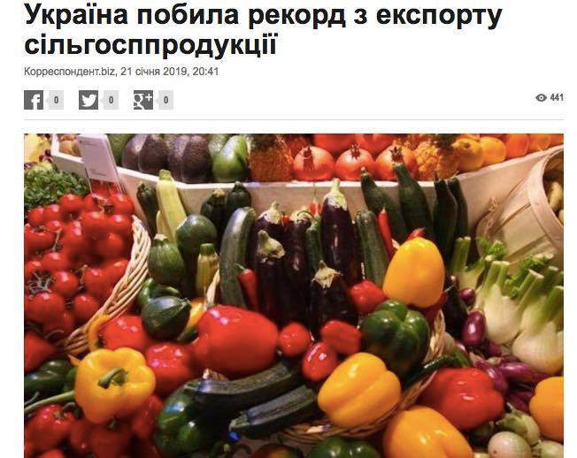 Експорт продукції АПК у 2018 році сягнув майже 19 млрд дол США, або 40% товарного експорту країни. Свою роль зіграли і підвищення цін на агросировину, і зростання врожайності. Основний приріст експорту показали кукурудза (+17%) та пшениця (+9%), експорт яких у 2018 році сягнув 6,5 млрд дол. Але ж при цьому експорт продукції борошномельно-круп’яної промисловості скоротився на 3% і склав лише 175 млн дол, а експорт готової продукції з зерна скоротився на 9% до 268 млн дол. США за рік.