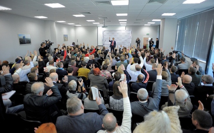 Також на з’їзді радикали одноголосно підтримали резолюцію про знищення парламентаризму в Україні, у якій застерегли про формування і наступ контрреволюції на чолі з Порошенком, який прийшов до влади на крові Майдану, але одразу ж зрадив його ідеали і очолив повзучий державний переворот.