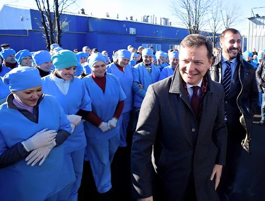"Дуже тепла зустріч в Синельниковому на Дніпропетровщині на підприємстві "S.Group", яке виробляє сухарики, горішки, зернята, чіпси та серветки. Місцеві кажуть: "працюю на Орєшках" або "працюю на Сємєчках"", - написав Ляшко на своїй сторінці у соцмережі Facebook.