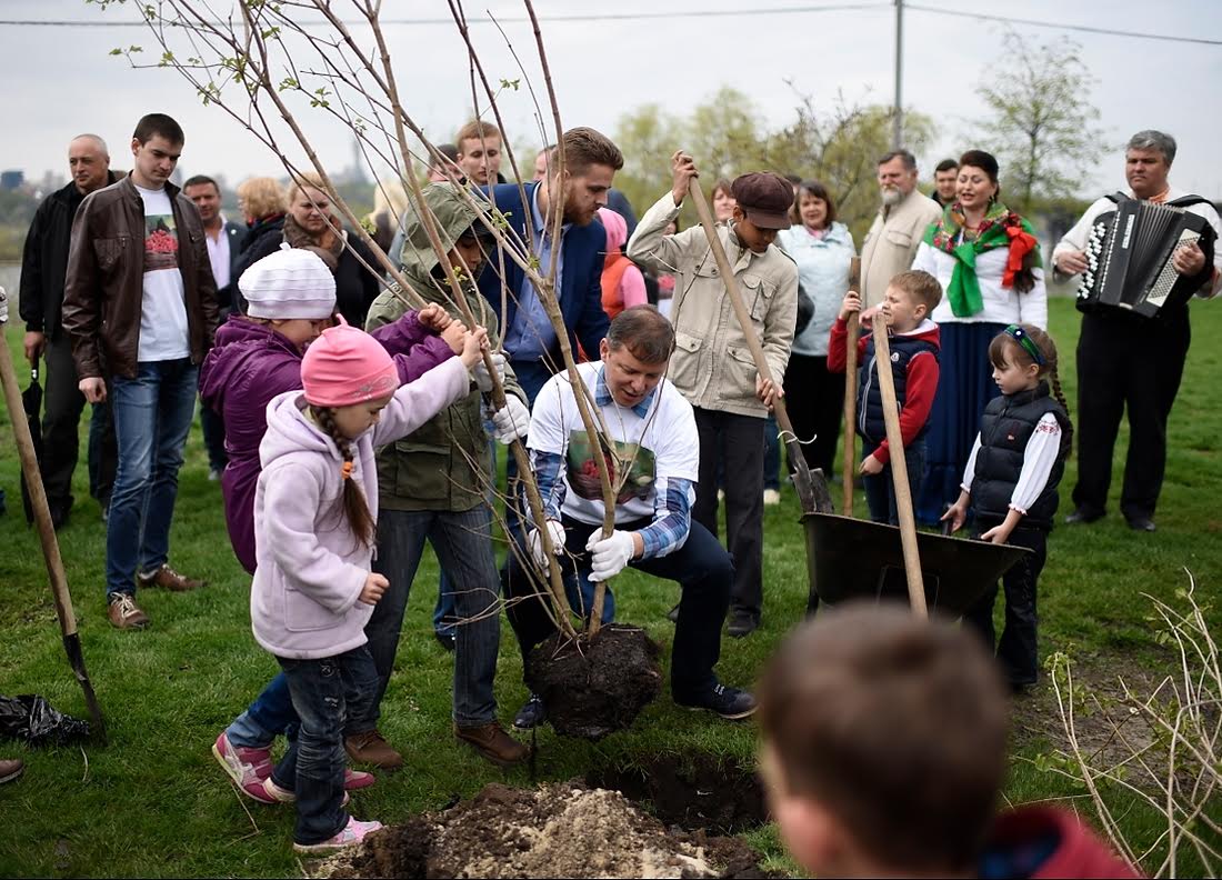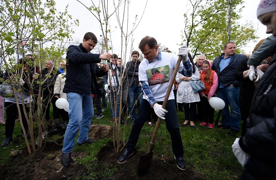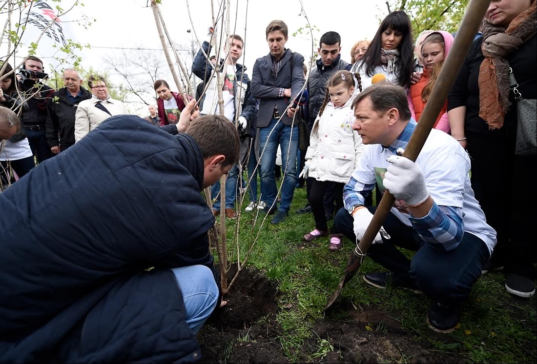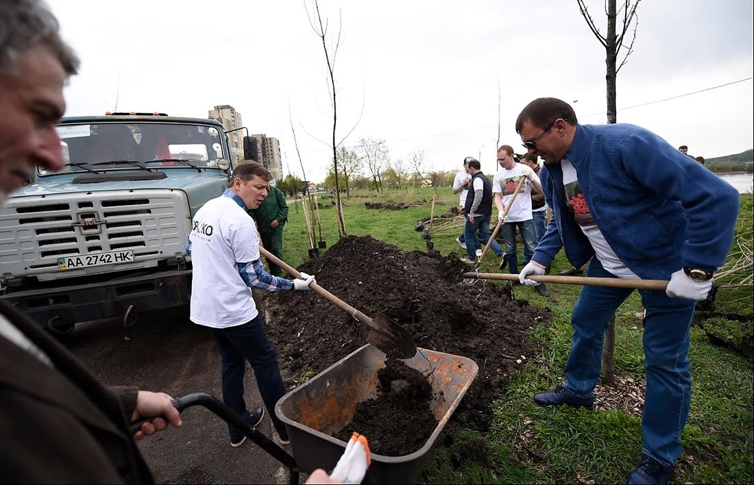 З нагоди всеукраїнського Дня довкілля лідер радикалів Олег Ляшко разом з побратимами посадили калину на Дніпровській набережній.