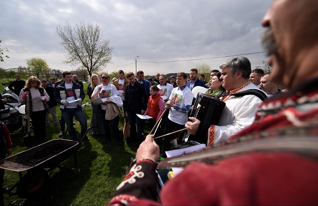 Близько двох сотень людей зібрались разом, щоб посадити калиновий гай.