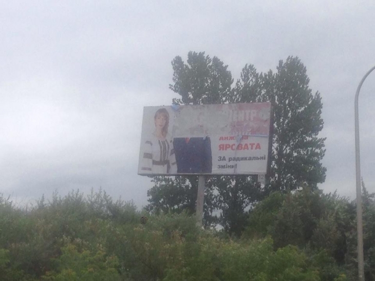 Мобільні бригади молодиків почали систематично нищити всю наочну агітацію на окрузі кандидата в народні депутати від Радикальної партії Олега Ляшка Анжели Яроватої.