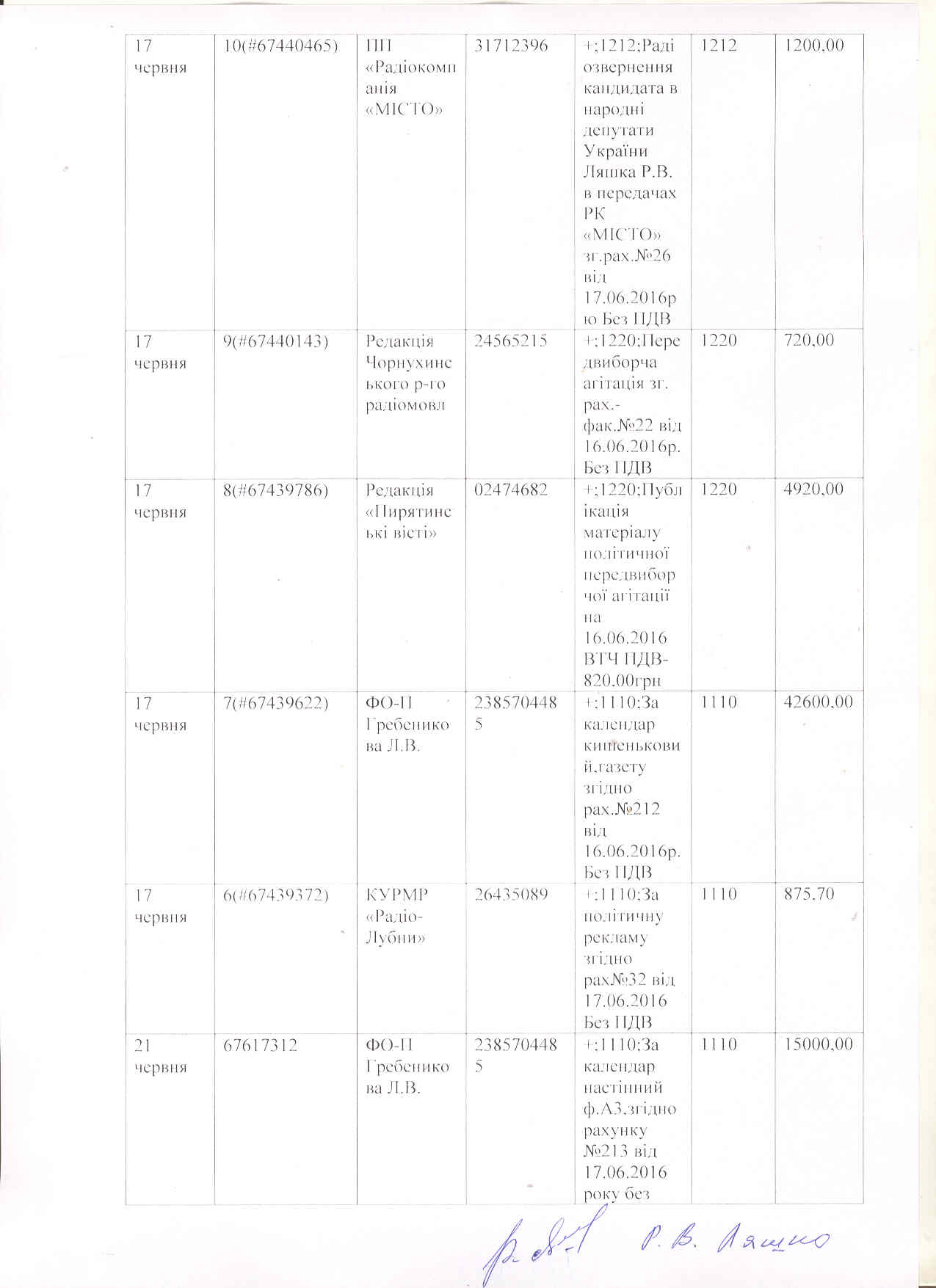 Звіт про надходження та використання коштів виборчого фонду кандидата у народні депутати України в одномандатному виборчому окрузі № 151 Ляшка Руслана Віталійовича на проміжних виборах народних депутатів України 17 липня 2016 року.