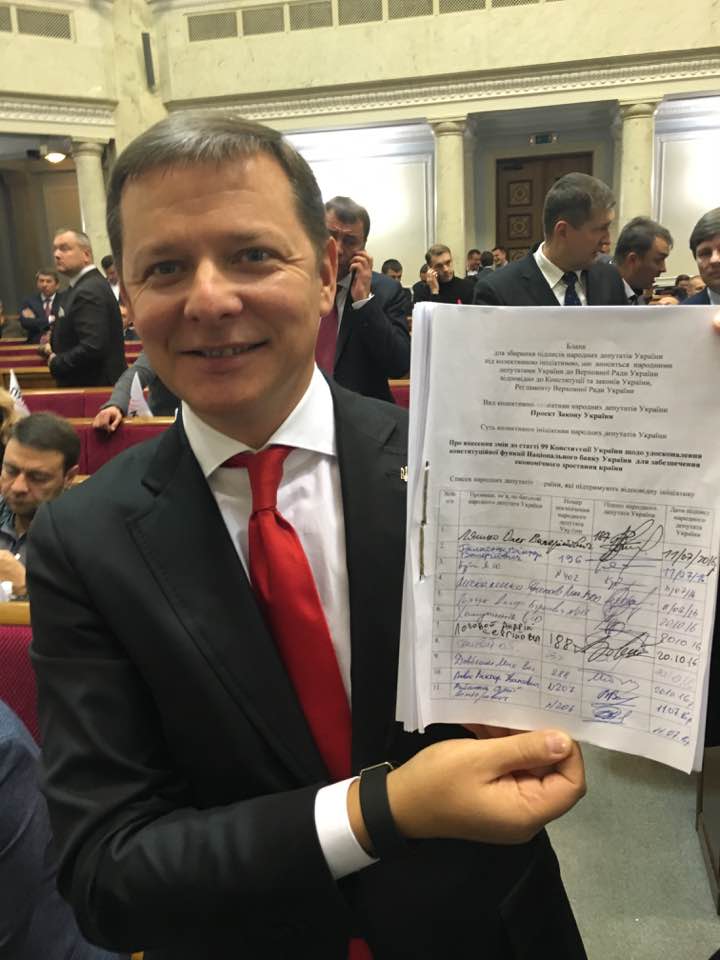 Депутати від фракції Радикальної партії Ляшка хочуть змінити функції НБУ, За відповідні зміни до Конституції радикали вже зібрали підписи 175 народних депутатів. Про це на своїй сторінці Facebook написав заступник лідера РПЛ з економічної політики Віктор Галасюк.