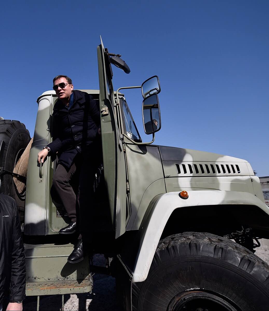«Вперше сів за кермо такої потужної машини. Відчуття – неймовірні. Це дійсно те, чим Україна може пишатися. Можливо в КрАЗі немає під задницею геморойної подушки, щоб там нічого не заржавіло, але в КрАЗі є інше: КрАЗ – це звір. Наш, український звір. Простий, надійний, потужний і добрий. Такий, як українці», - поділився відчуттями нардеп.