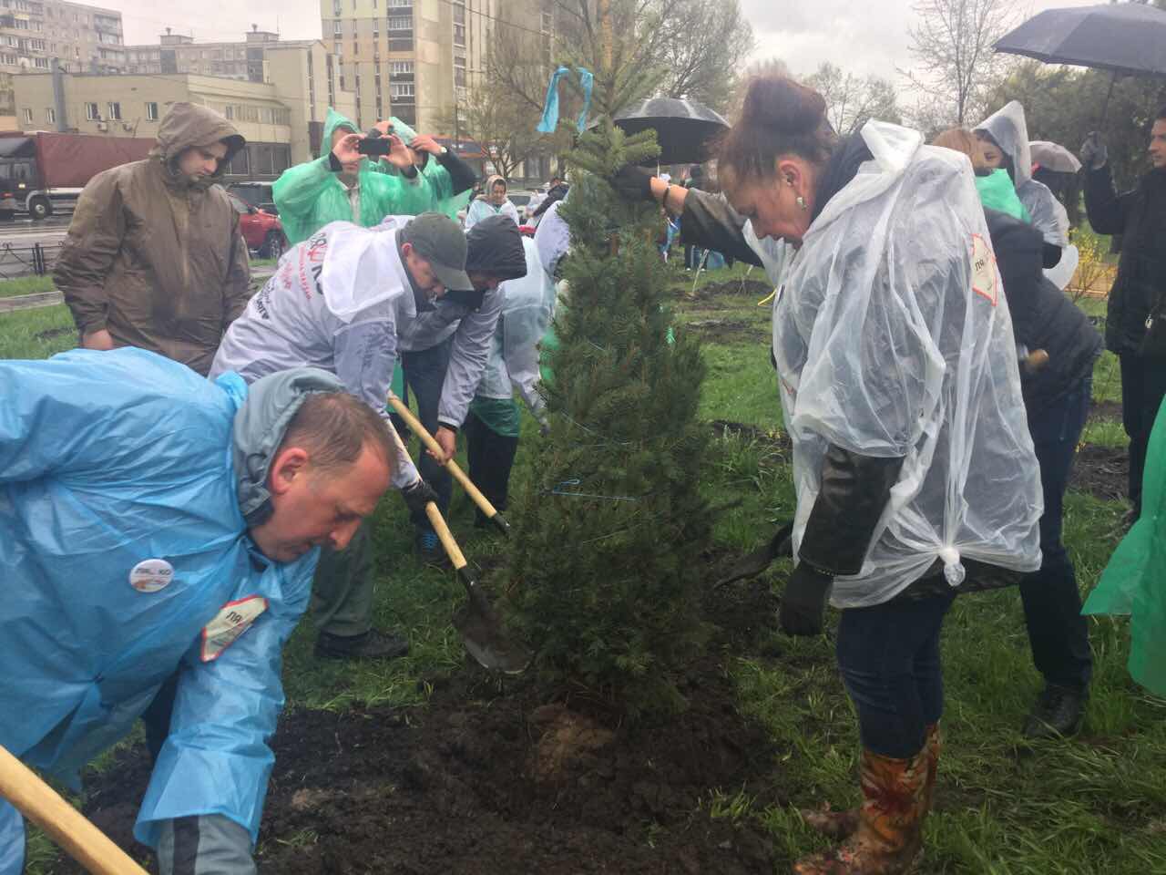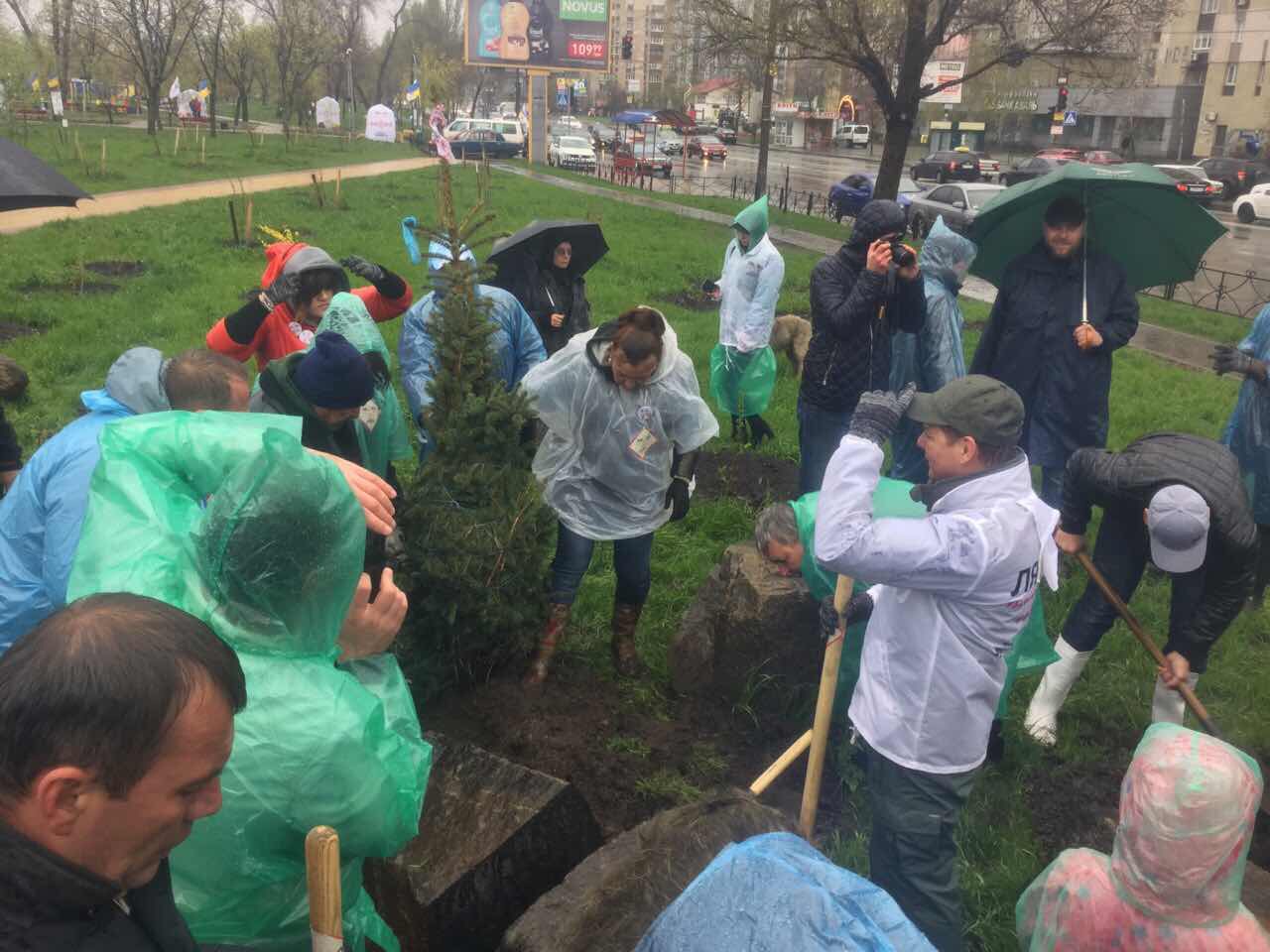 Разом з депутатами він висадив кущі та поспілкувався із киянами. Активістів пригощали пиріжками з калиною та чаєм і розважали українськими піснями.