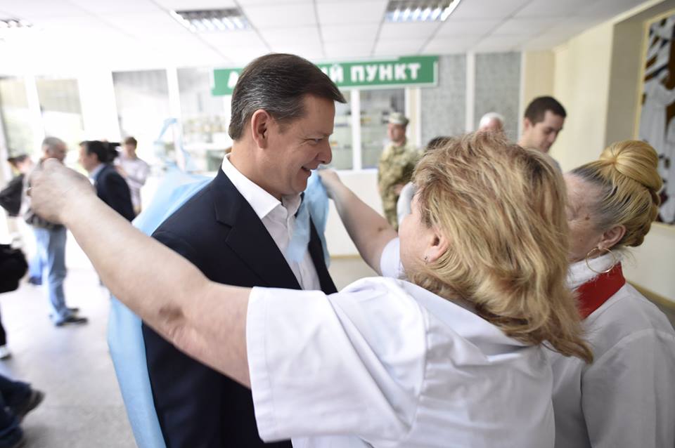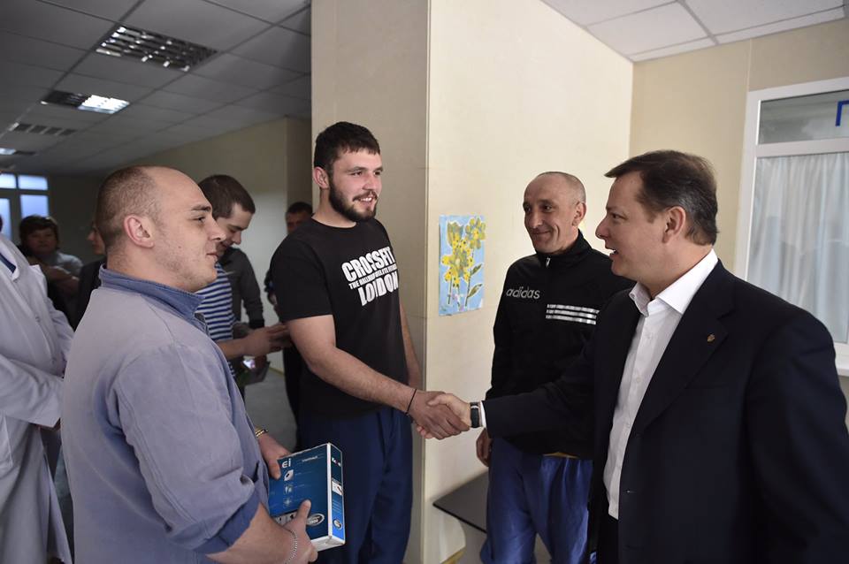 Перебуваючи з робочим візитом у Харкові, лідер фракції Радикальної партії Олег Ляшко завітав до Харківського Військово-медичного клінічного центру Північного регіону, де проходять лікування бійці АТО. Політик привіз продукти, солодощі, картки для поповнення мобільних телефонів.