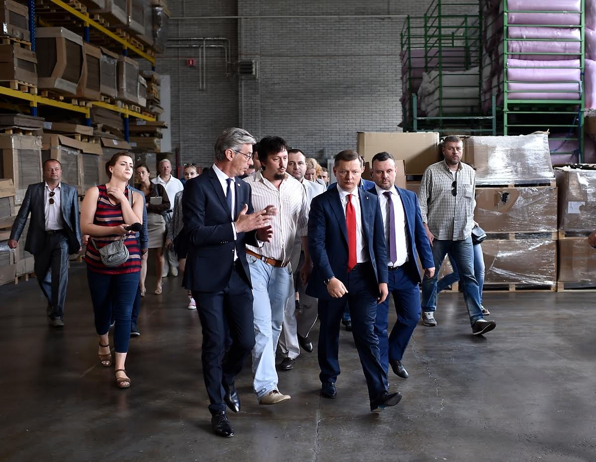 «Ваше підприємство – це приклад того, чому не можна скасовувати мораторій на вивезення лісу-кругляка. Завдяки його дії, у вас є сировина для виготовлення продукції, а в півтисячі людей – робота і зарплата, близько 5000 грн. А коли в необробленому вигляді ліс забирають за кордон, то вони там створюють робочі місця, а тут на Житомирщині, де 80 % лісів, люди сидять без роботи. Хочуть наш ліс – нехай створюють робочі місця, ставлять нове обладнання, завозять сировину і виготовляють готову продукцію в Україні, як це робиться на цьому житомирському підприємстві», - наголосив Ляшко.
