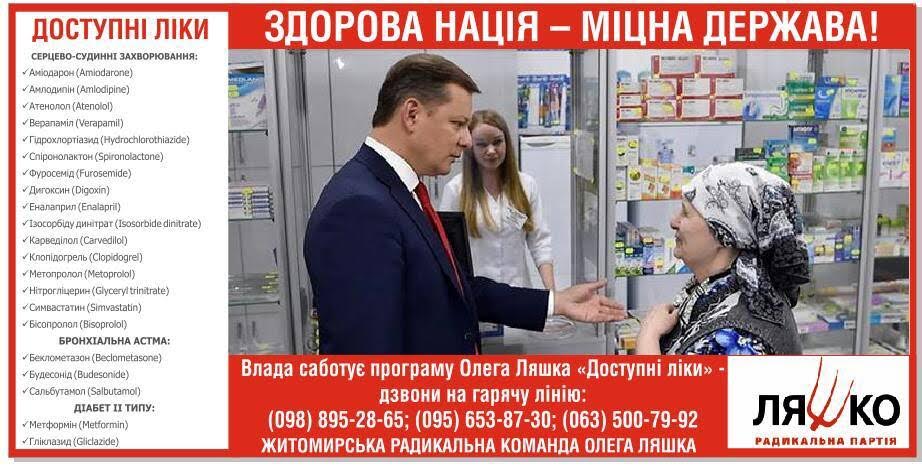 Якщо Ви стали жертвою прострочених ліків та недобросовісних медиків інформуйте обласний штаб Житомирської Радикальної партії Олега Ляшка – 0988952865; 0635007992; 095-653-87-30