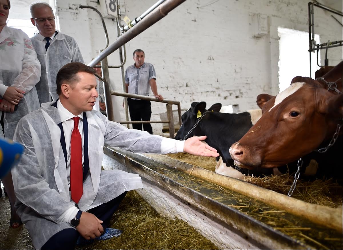 На Шполянській фермі утримуються більше 2500 корів. Є й корова-рекордсменка, яка дає 67 літрів молока на день. Лідер Радикальної партії залишився у захваті від умов утримання худоби та подякував дояркам за їхню щоденну працю.