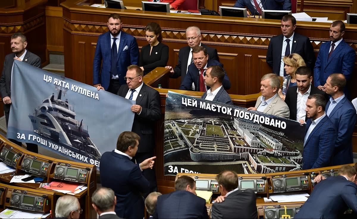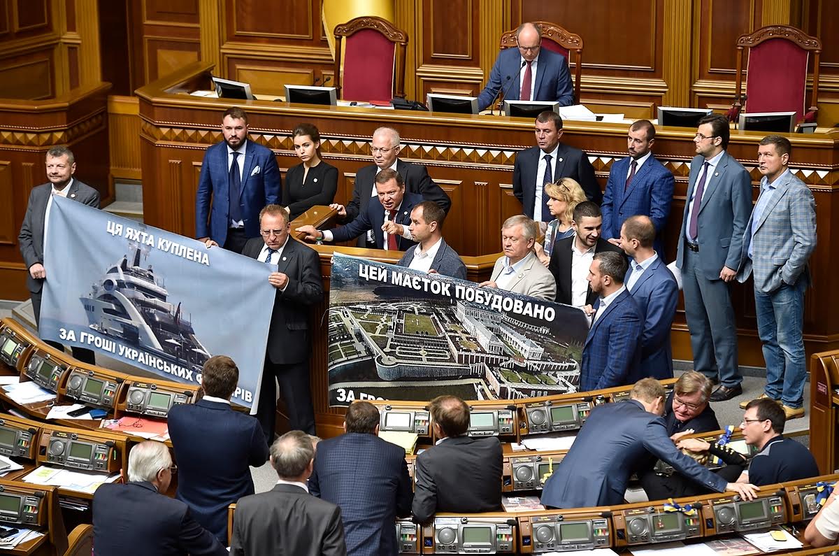 «Оця яхта коштує 300 мільйонів доларів. Оцей маєток під Києвом коштує мільярд доларів. Власник всього цього олігарх та аграрний барон Косюк. Все це побудоване за дотації, призначені українським фермерам. Минулого року ми добилися, аби виділити 3 мільярди гривень дотацій аграріям, але уряд прийняв такий порядок, за яким 60% цих коштів отримує олігарх Косюк. При цьому фермери і 50 тисяч гривень не можуть отримати на корів. Уряд віддає мільярди компенсацій косюкам, аби вони купували яхти та маєтки, а в українському селі скоро корову днем з вогнем не знайдеш!», - наголосив Ляшко.