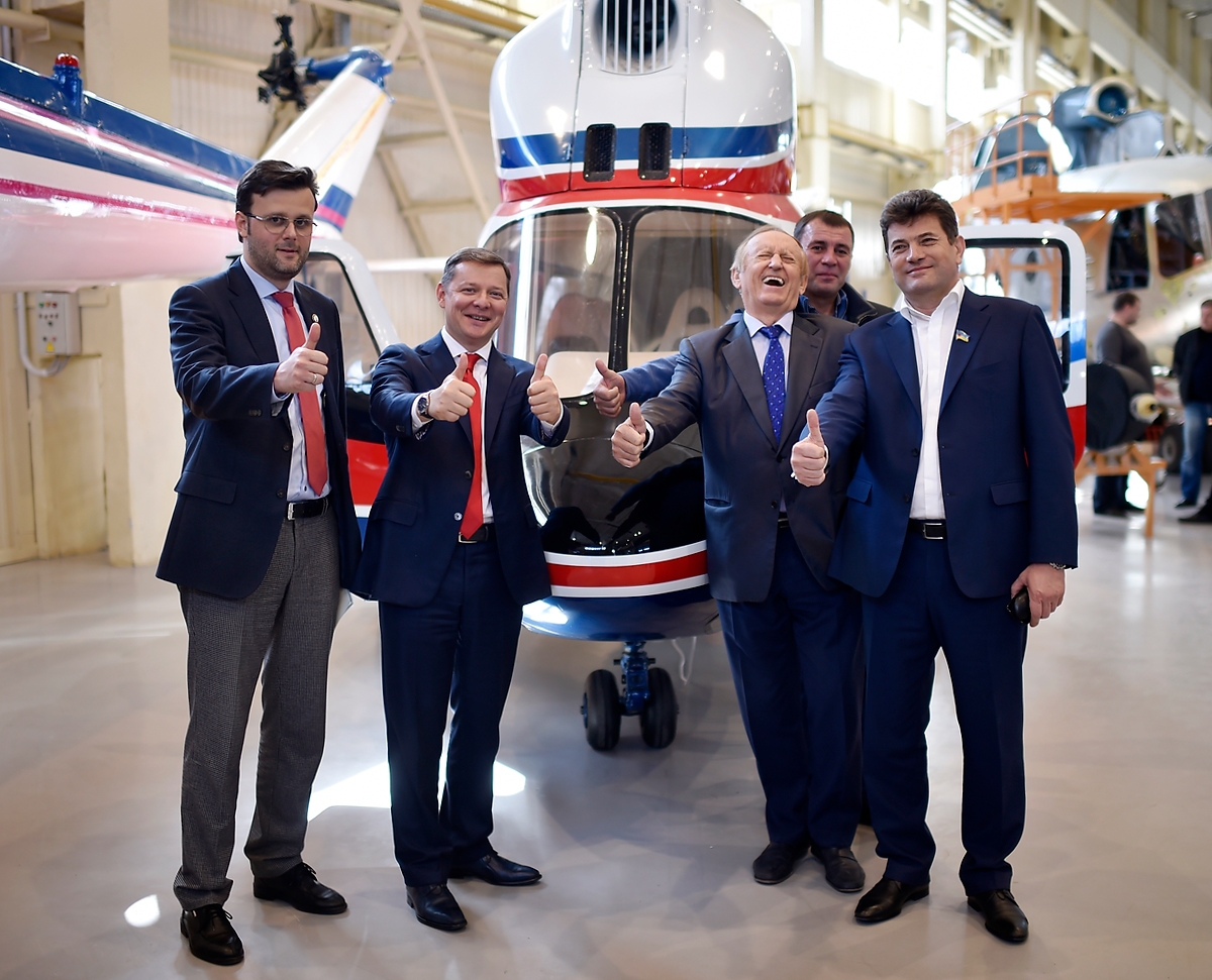 Олега Ляшка разом із однопартійцями Віктором Галасюком та Сергієм Скуратовським зустріли на підприємстві тепло. Розповіли, що новий гвинтокрил назвуть на честь Ляшка, а також подарували першу срібну медаль, яку випустили до 110-річчя «Мотор Січі».