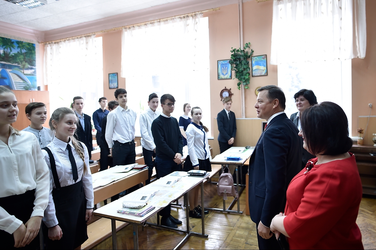 Олег Ляшко провів учням гімназії урок географії, який і сам дуже любив під час навчання у школі-інтернаті.