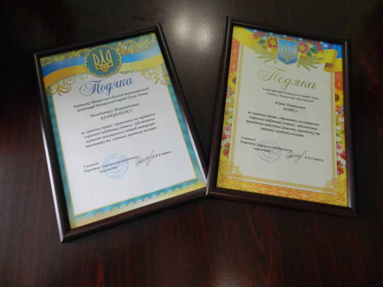 Володимир Кравценюк, голова Волинського осередку Радикального партії зауважив: «Треба показувати людям, що йде робота як ініціативних керівників, так і депутатів у вирішенні проблем. Коли я вперше відвідав пансіонат, пральне відділення було вже відремонтоване, а харчоблок – в аварійному стані. Відтоді ми почали працювати в цьому напрямку і нам вдалося. Було виділено 200 тисяч гривень на ремонт харчоблоку.  Це гарна робота нашої команди і зокрема фракції у Волинській обласній раді на чолі з Юрієм Ройком».