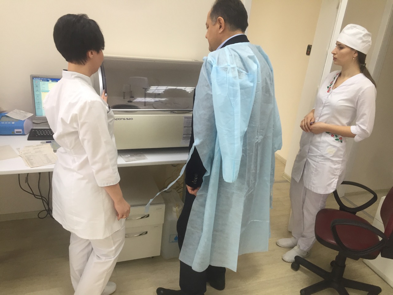 Завідувач клініко-діагностичної лабораторії Наталія Каташинська продемонструвала автоматичний біохімічний аналізатор. Лікар підкреслила, що за годину він спроможний робити до 200 досліджень. Це звільняє лікарню від залежності як від виробників, так і від закупівлі обов’язкових реактивів.