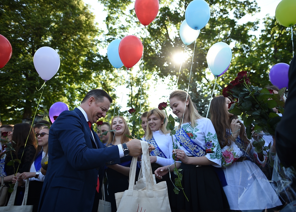 Олег Ляшко приїхав в рідні Прилуки, щоб взяти участь у святі останнього дзвоника в гімназії №1 ім.Георгія Вороного. Виступаючи на "лінійці", політик на власному прикладі розповів, як простий хлопець з дитбудинку може досягти всього в житті.