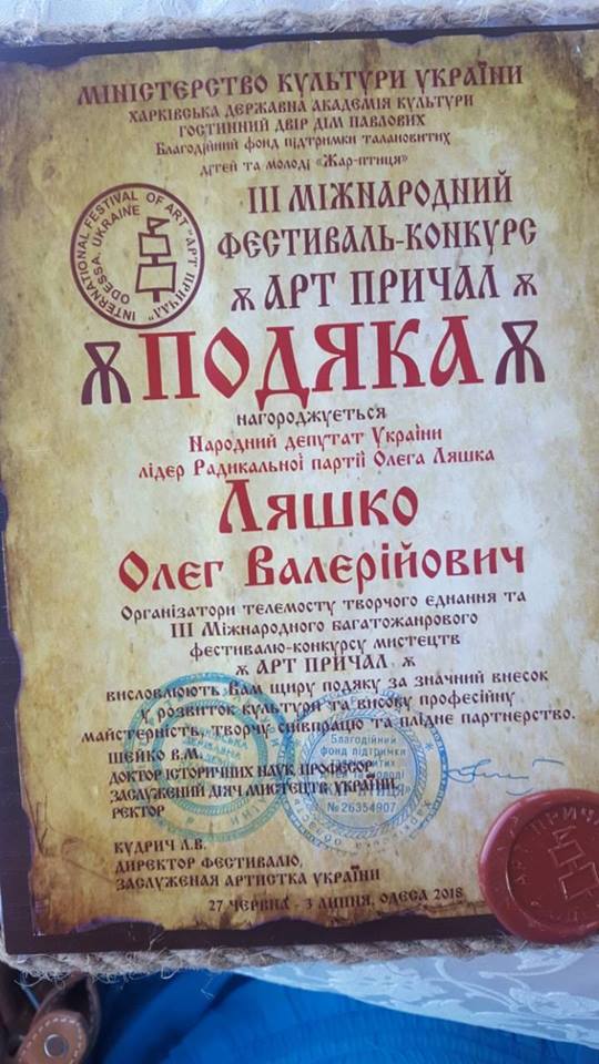 В Одесі пройшов третій  дитячий фестиваль «АРТ-Причал – 2018». На конкурсі взяли участь більше 100 дитячих колективів, які приїхали до берега Чорного моря з усіх регіонів України. Крім українських конкурсантів у творчому змаганні взяли участь представники Грузії та Білорусі. Серед співорганізаторів фестивалю була Радикальна партія Олега Ляшка. Одеські радикали забезпечили трансфер учасників фестивалю; провели спортивні змагання серед батьків конкурсантів та «веселі старти» серед дітей;  забезпечили солодощами та подарунками всіх учасників фестивалю і спеціальними нагородами переможців конкурсу. Також члени Радикальної партії взяли на себе забезпечення прямої трансляції фестивалю. «Ми вже третій рік поспіль приймаємо активну участь в організації цього творчого заходу, - говорить Вадим Ковальський, голова міської організації РПЛ в м. Одеса. – З кожним роком кількість учасників зростає. Якщо три роки тому було понад 300 учасників, то сьогодні зареєструвалося 430 учасників віком від 6 до 17 років». Голова Одеської територіальної організації Олександр Токарчук зазначив, що для Радикальної партії це дуже почесна місія бути організаторами творчого змагання на рівні фестивалю, який є символом  об’єднання країни. «На кілька днів ми стали одним з головних майданчиків єднання. Головна тема, яка лунала в піснях наших учасників – мир в країні. Співорганізатори фестивалю подякували  Олегу Ляшку “за значний внесок у розвиток культури та високу професійну майстерність, творчу співпрацю та плідне партнерство”. Коли об’єднуються  політики та творчі люди – країна має майбутнє. Мирне».