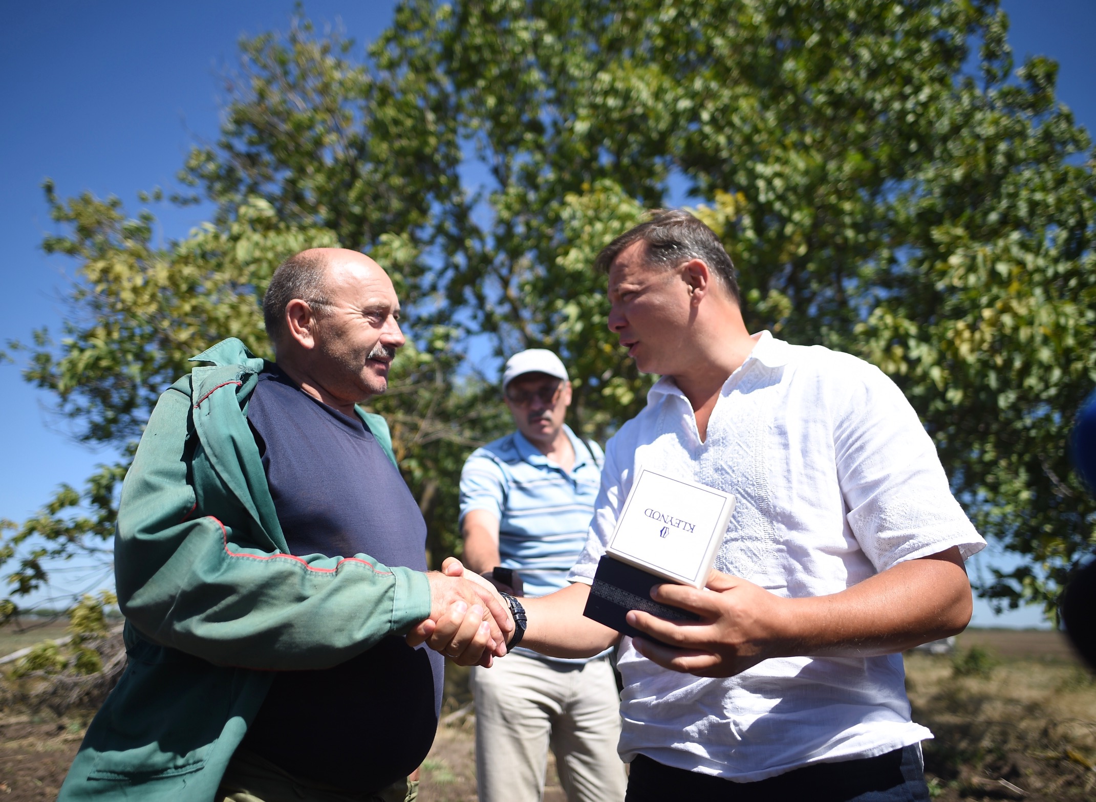 Також Олег Ляшко оглянув поля господарства та допоміг на тракторі продискувати землю для нового врожаю. А трактористу Миколі Рицанюку політик подарував годинник.