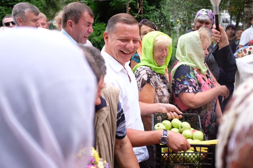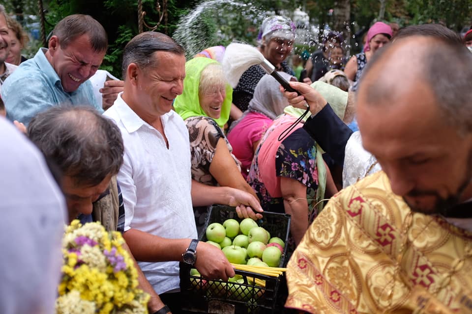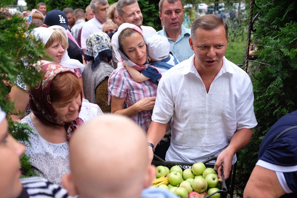 «Ви мені груші – а я вам яблука!». Лідер Радикальної партії Олег Ляшко у свято Преображення Господнього освятив яблука зі свого саду в церкві Святого Єфрема у Переяславі на Київщині та роздав їх вірянам. Навзаєм люди щедро пригощали політика тим, що принесли з собою у храм.