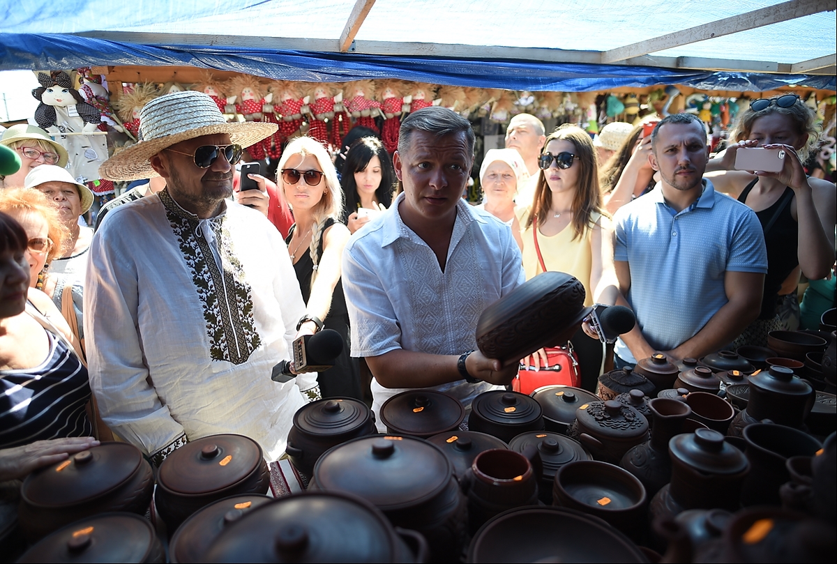 Вишиванку, пательні, глиняні глечики, скатертину, картини та бриль придбав Олег Ляшко на Сорочинському ярмарку на Полтавщині. Все, що загадала дружина Росіта. Лідер Радикальної партії традиційно відвідав ярмарок у Великих Сорочинцях, накупив товарів від народних майстрів та поспілкувався із продавцями. Люди жалілися, що цьогоріч покупців набагато менше, ніж у попередніх роках. Через що і виторгу немає.