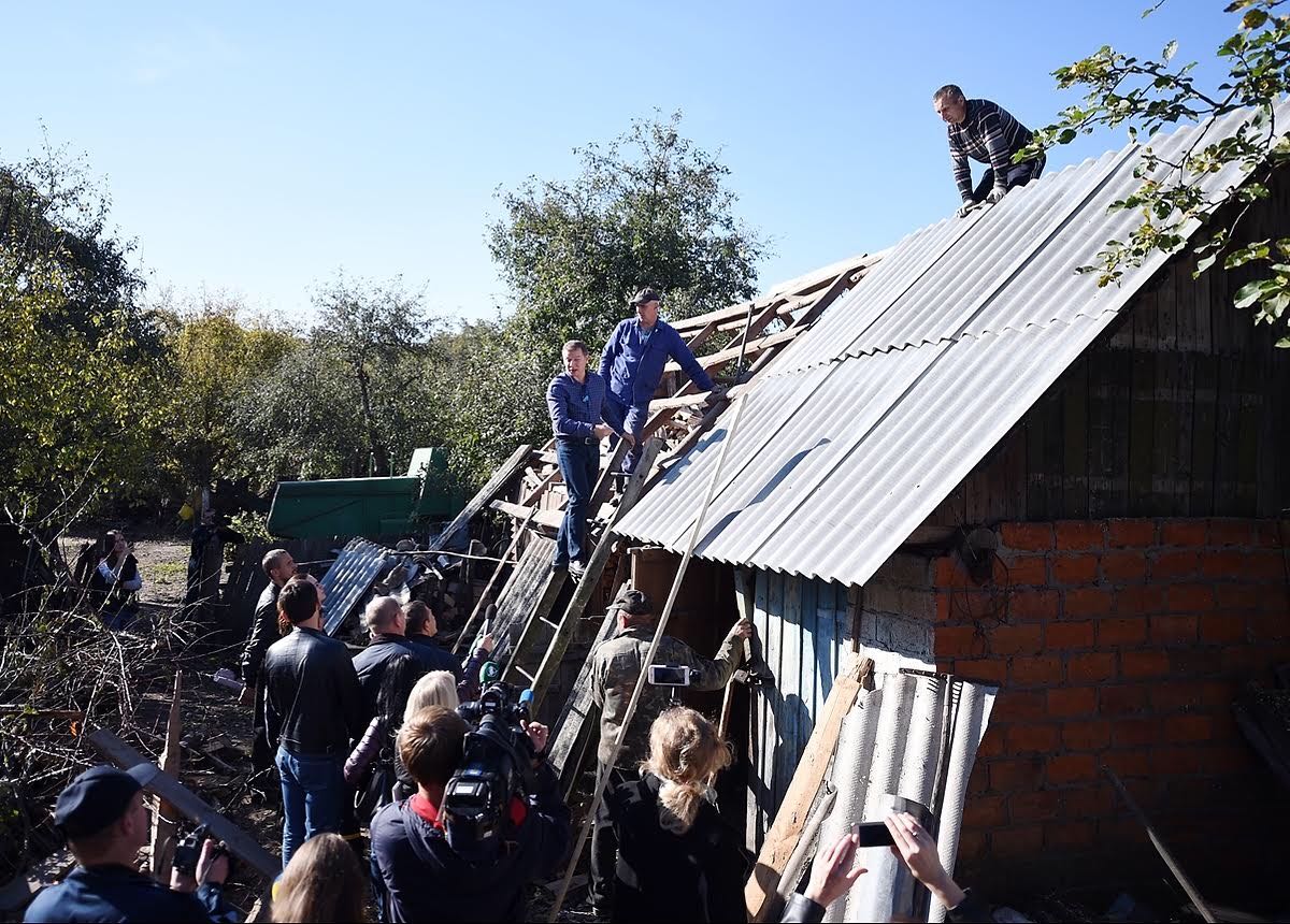 Він і сам перевірив, як перекривають шифером зруйновані дахи будинків - драбиною заліз на одну з хат і звідти пообіцяв бути "міцним дахом" для всіх своїх земляків.