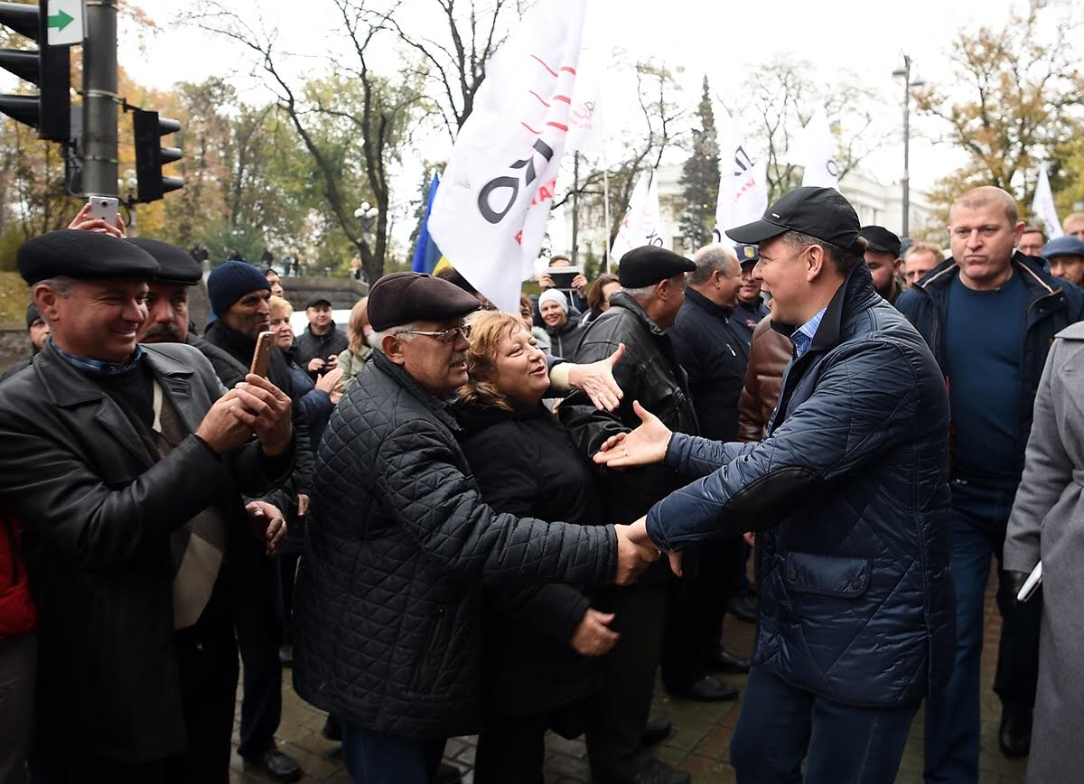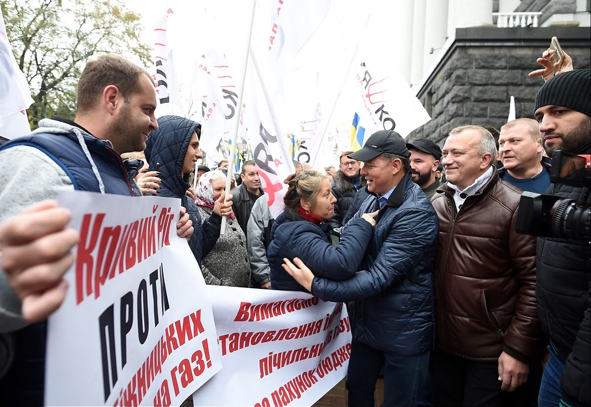 Учасники мітингу ухвалили резолюцію зі своїми вимогами і пішли в Кабмін передати її високопосадовцям. З протестувальниками на чолі із Олегом Ляшком зустрівся прем’єр-міністр Володимир Гройсман. Політик поставив йому запитання, яке турбує мільйони українці – де людям взяти гроші на оплату комуналки? Аргументи урядовця не переконали лідера РПЛ. Натомість, політик звернув увагу на те, що в Кабміні спекотно, як в Африці, в той час, як в школах і лікарнях опалення досі не включили. Олег Ляшко переконаний, поки в людей батареї холодні – чиновники не мають сидіти в теплі.