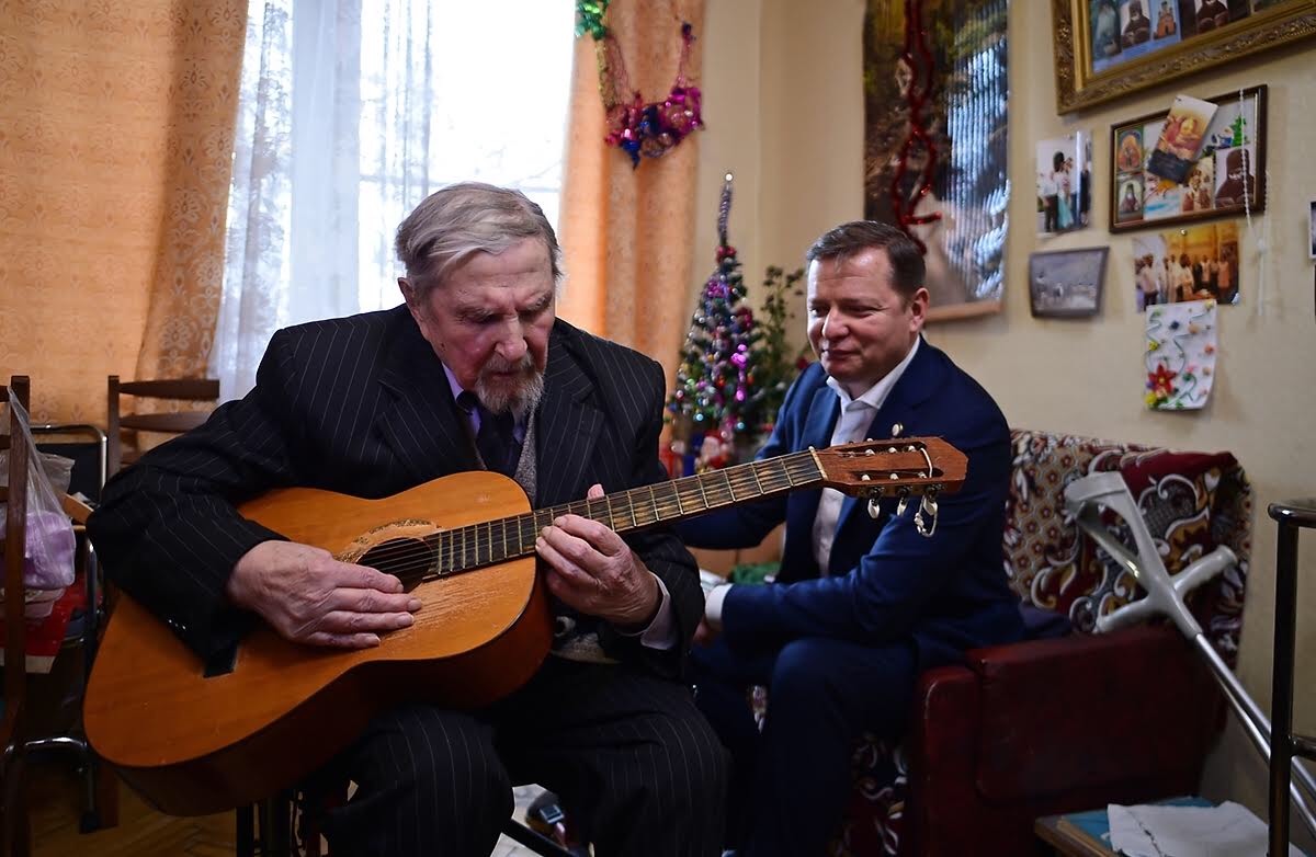 Політик поспілкувався майже з кожним ветераном. Діна Іллівна прочитала йому свої вірші, а Григорій Степанович, який 2 січня відсвяткував 99 років, зіграв на гітарі. Дідусь вже нічого не бачить, але його пальці досі пам’ятають всі акорди. Його співом Олег Ляшко був дуже розчулений.