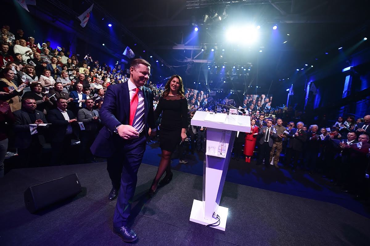 «Подивіться, яка красива майбутня перша леді буде!», - покликав Ляшко на сцену свою дружину.