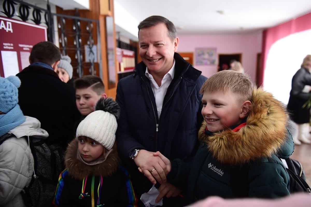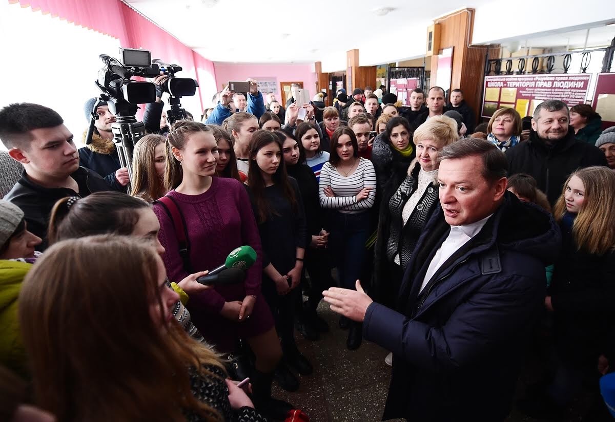 Олег Ляшко відвідав Прилуцьку гімназії № 5 ім. В. А. Затолокіна на Чернігівщині, на заміну вікон у якій вибив з Держбюджету майже 700 тисяч гривень. Діти оточили політика ще на вході до навчального закладу. Їм він пообіцяв відновити безкоштовне харчування і у страших класах аби школярі не падали в голодні обмороки, були здоровими і спортивними.