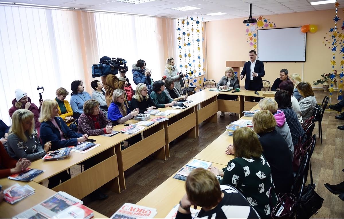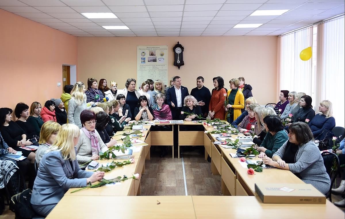На зустрічі з педагогічним колективом політик наголосив на важливості даної професії у суспільстві та її гідній оплаті.