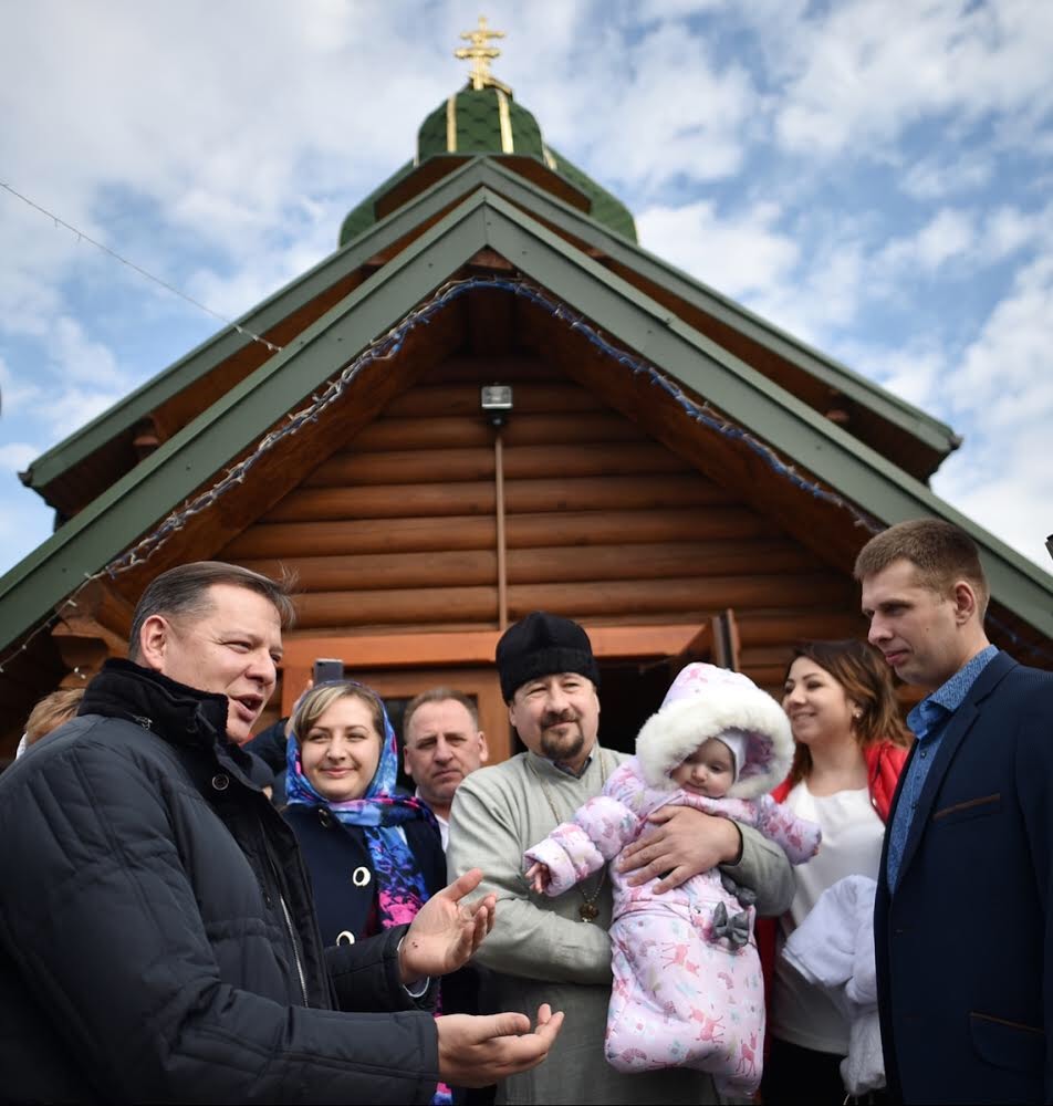 Перед зустріччю з людьми в селищі Ярмолинці на Хмельниччині Олег Ляшко проходив повз Преображенський собор, де молоді батьки Віта та Сергій щойно похрестили маленьку донечку Валерію. Політик зайшов привітати родину, а також розпитав, як вона живе.