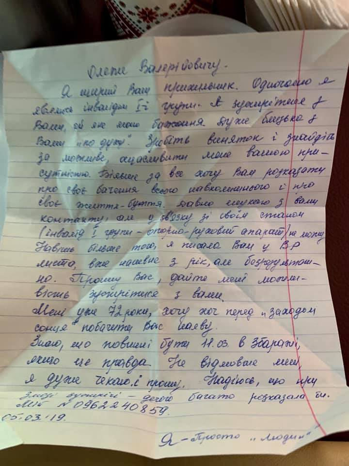 «Прошу Вас, дайте мені можливість зустрітися з Вами. Мені вже 72 роки, хочу хоч перед «заходом сонця» побачити Вас наяву», - звернулась до народного депутата бабуся Євгенія.