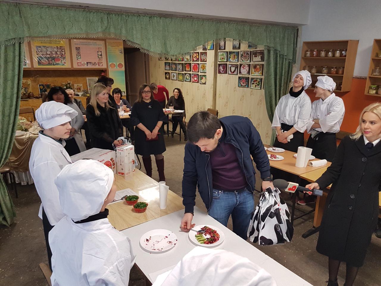 На конкурсні змагання майбутніх кухарів завітав куратор Харківскьої області від Радикальної партії Олексій Кочармін і з задоволенням продегустував приготовані страви.