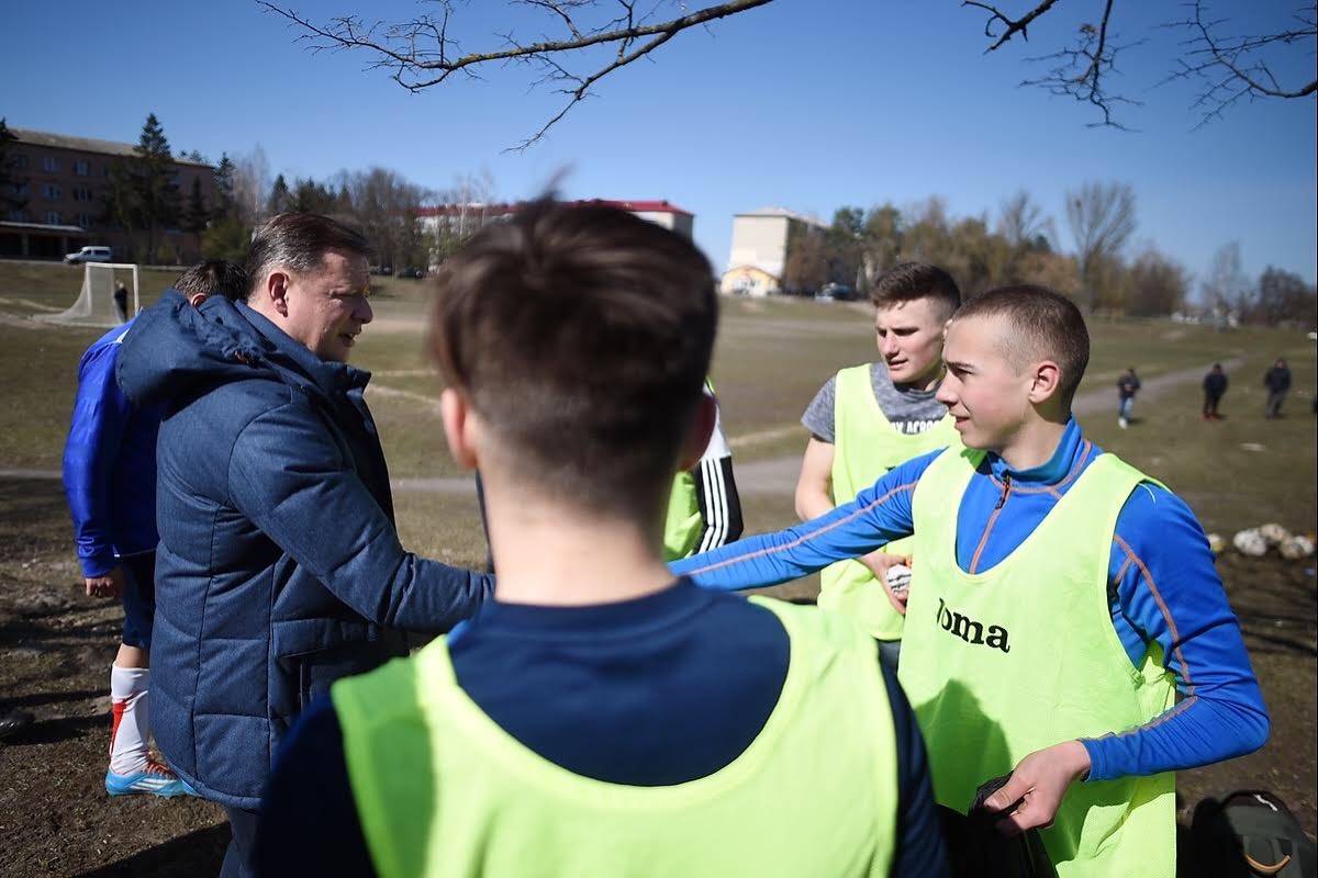 "Фізкультура і спорт - це супер, бо коли ви займаєтеся спортом, тоді молодь не тиняється по генделиках, не курить і не колиться.Тому я підтримую спорт і хочу, щоб у вас було нормальне екіпірування, взуття та м'ячі", - зазначив лідер РПЛ.