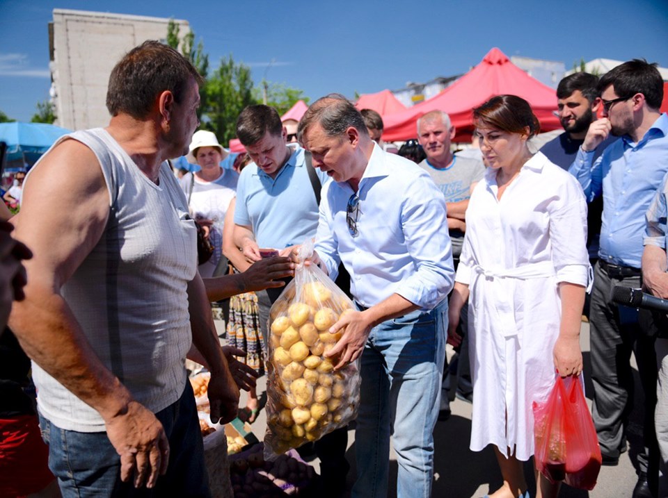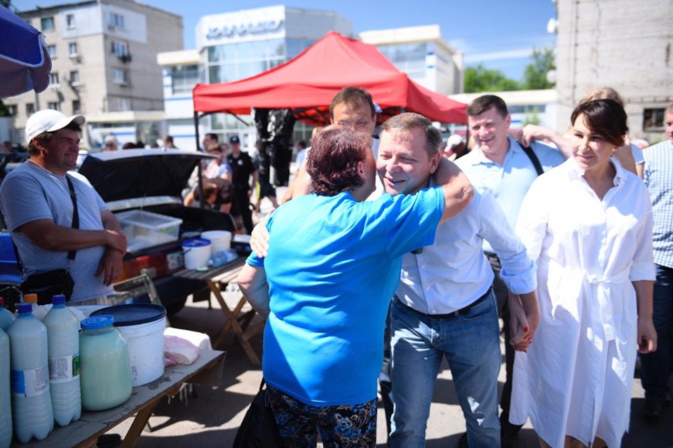 Олег Ляшко разом з дружиною Росітою скупився на ярмарку в Сєвєродонецьку – придбав копченого сала, молока, мішок молодої картоплі та городину додому. Продавці висловили вдячність політику і за почин, і за те, що не дозволив місцевій владі закрити ярмарок і позбавити їх заробітку. Робили великі знижки.