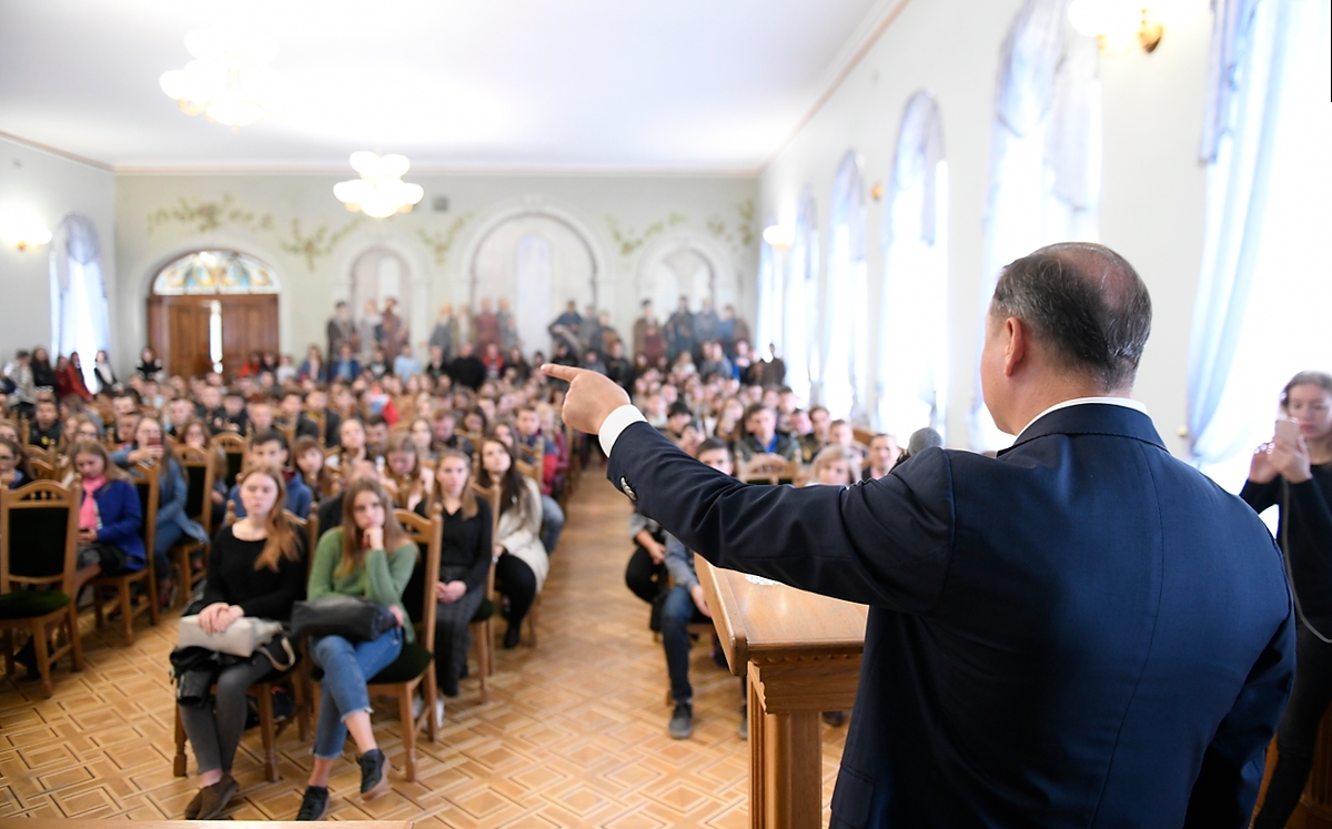 Після урочистостей з нагоди відкриття нового корпусу Олег Ляшко провів лекцію для студентів університету. Розповів, чому не можна продавати українську землю, чим загрожує для України процес імпічменту Президента США та чому мінські домовленості не працюють.